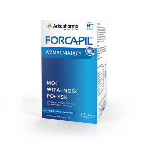 Wzmacniająca formuła Forcapil® to połączenie składników aktywnych, które zapewnią Twoim włosom i paznokciom Moc, Witalność i Blask. Produkt okrzyknięty „Ulubionym Produktem Francuzów”*, Forcapil® oferuje kompletną formułę dla Twoich włosów i paznokci z potwierdzoną skutecznością!