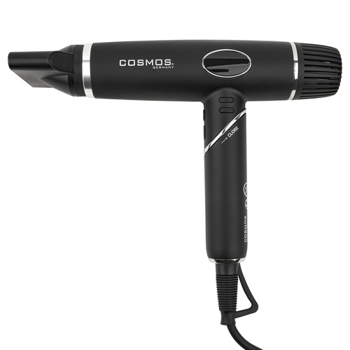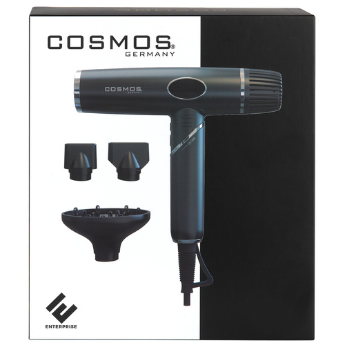 • Suszarka do włosów Cosmos ENTERPRISE- mocny, szybki silnik bezszczotkowy z innowacyjnymi funkcjami. Dzięki generatorowi jonów włosy pozostają lśniące i łatwe w układaniu. Do szybkiego, profesjonalnego suszenia, prostowania, kręcenia, delikatnej stylizacj